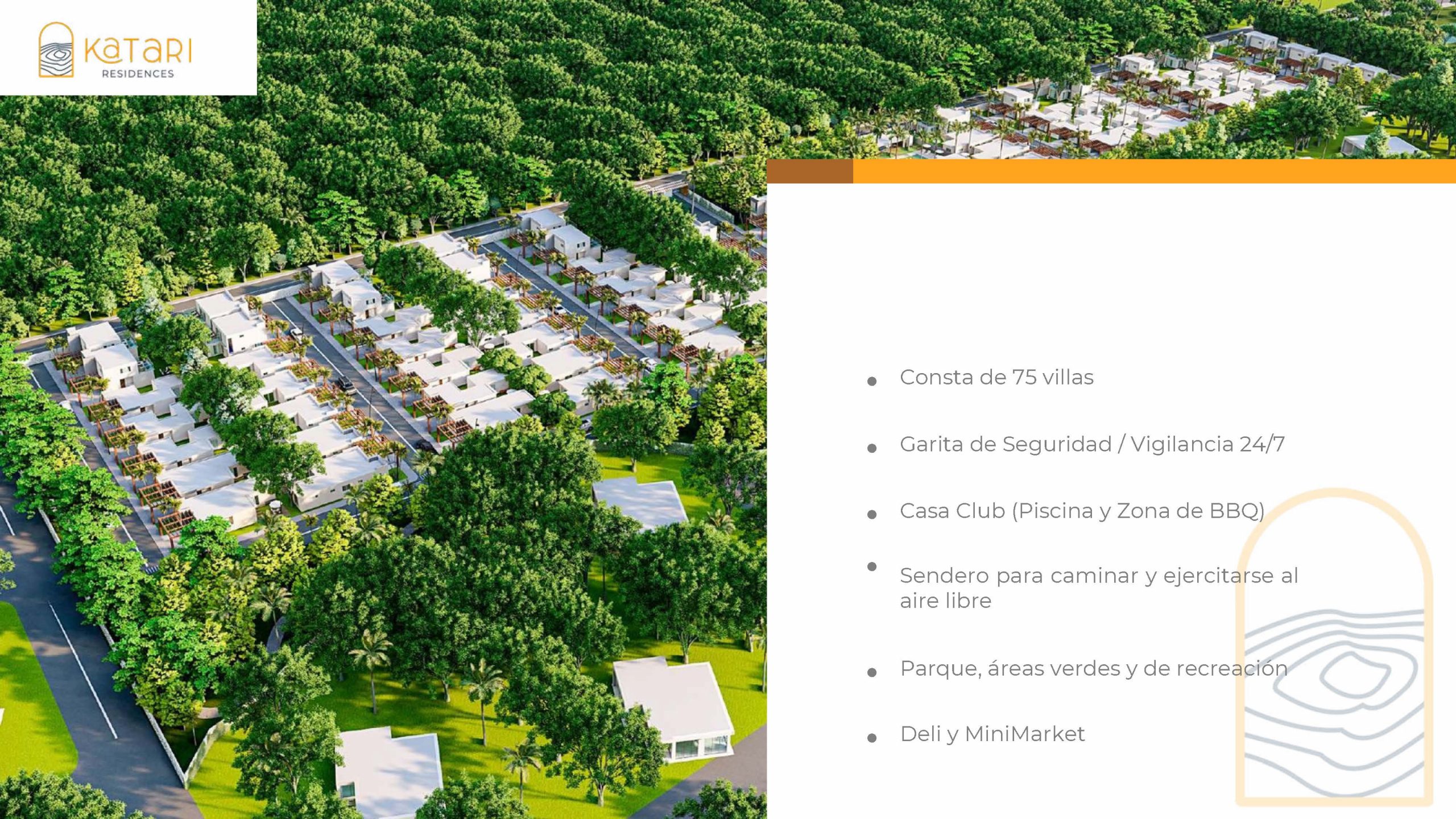 Esta comunidad privada cuenta con garita de seguridad, vigilancia 24/7, casa club con piscina y zona de BBQ, sendero para caminar y ejercitarse al aire libre, parques, áreas verdes y de recreación, ademas de convenientes tiendas deli y su propio mini market.